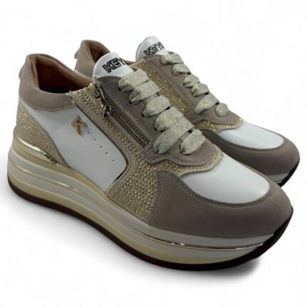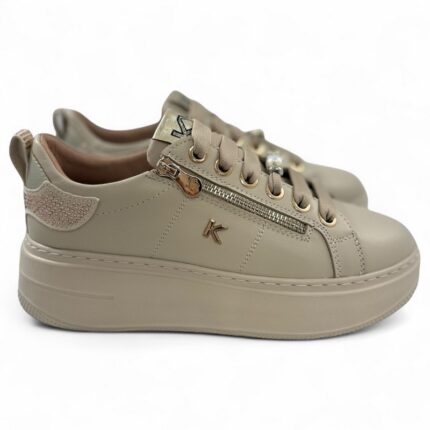 Sneakers Keys pelle beige con accessorio removibile art.11212