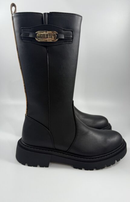 Stivale Alviero Martini donna nero con logo in metallo oro art.2310