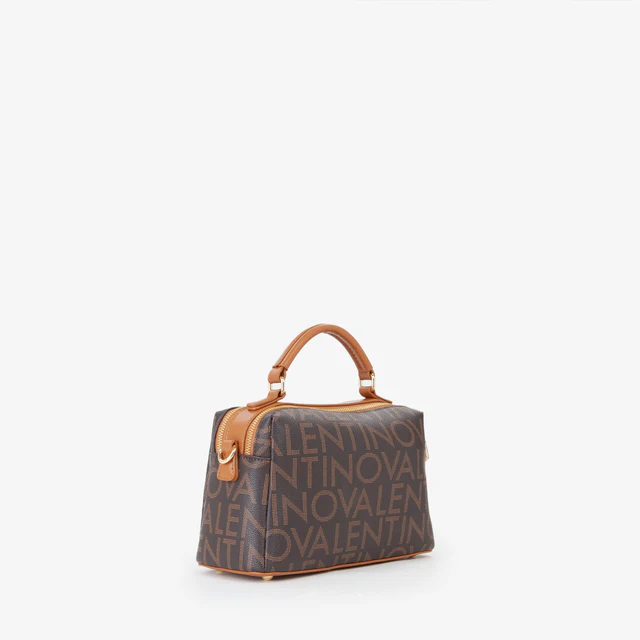 Tascapane con manico , stampa all over logato su base grana riciclata, e dettagli in nappa , tracolla a nastro con logo jaquard intono