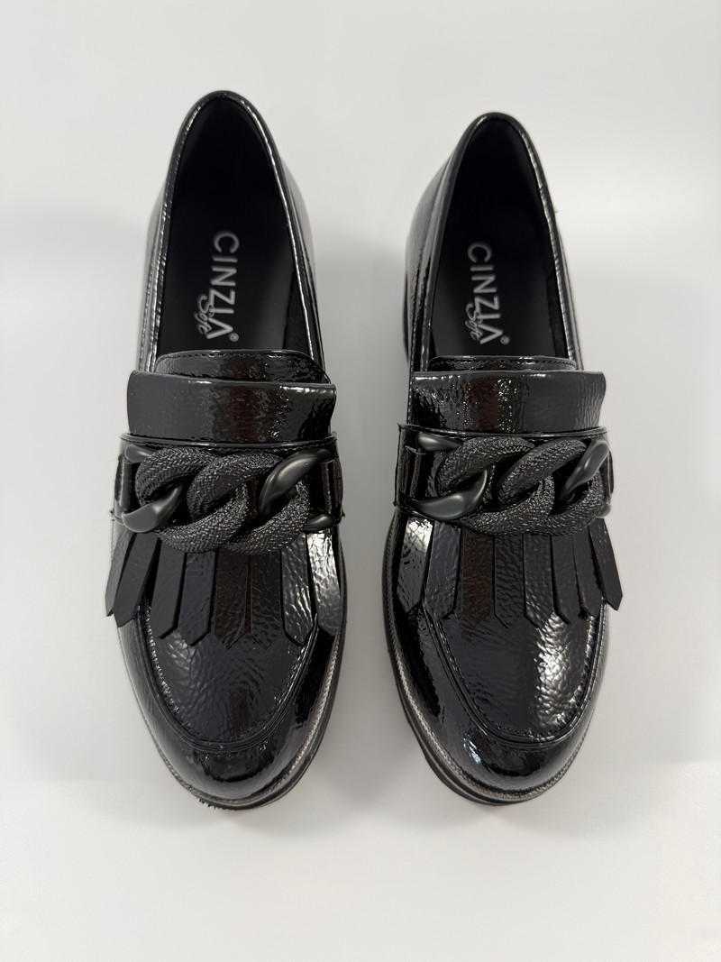 Mocassino Cinzia Soft vernice nero con accessorio art.2066