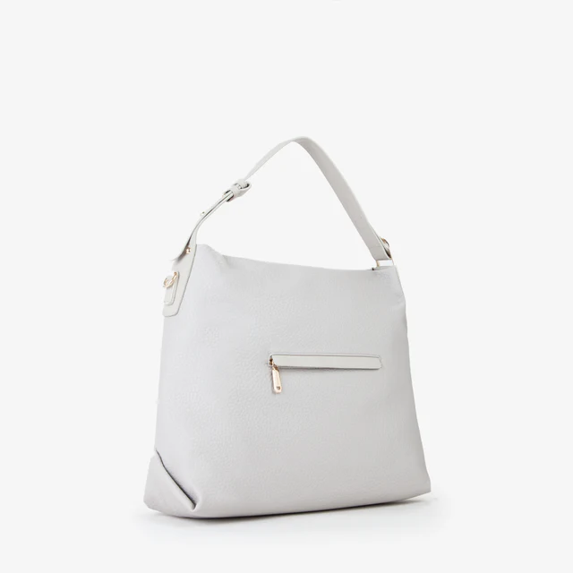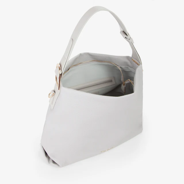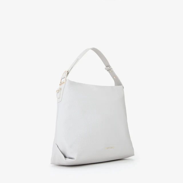 Sacca con fibbia decorativa, su cui è inciso il logo. Quest’ ultimo è presente anche gommato sul davanti.
