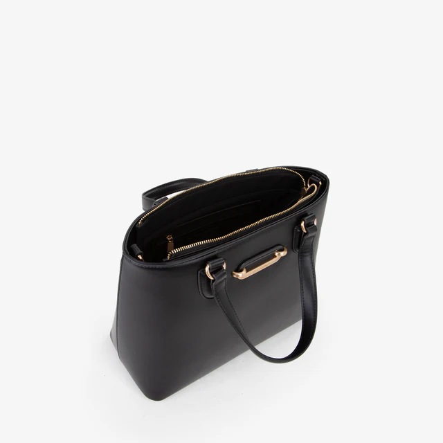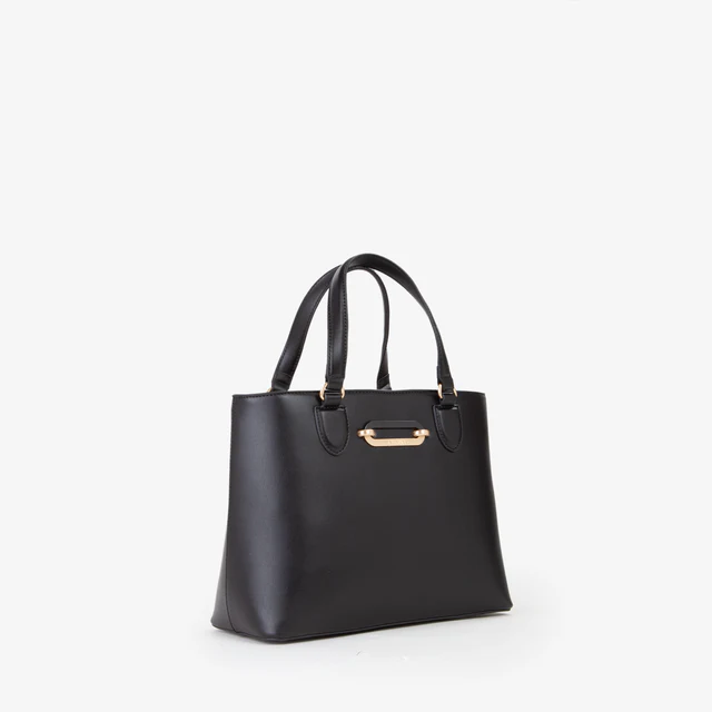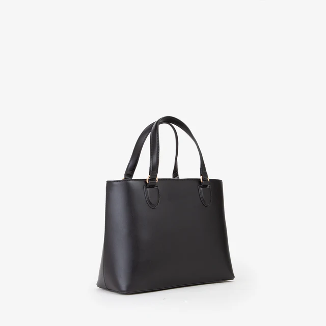 Shopping a mano con logo inciso su placca bicolore, sul davanti.