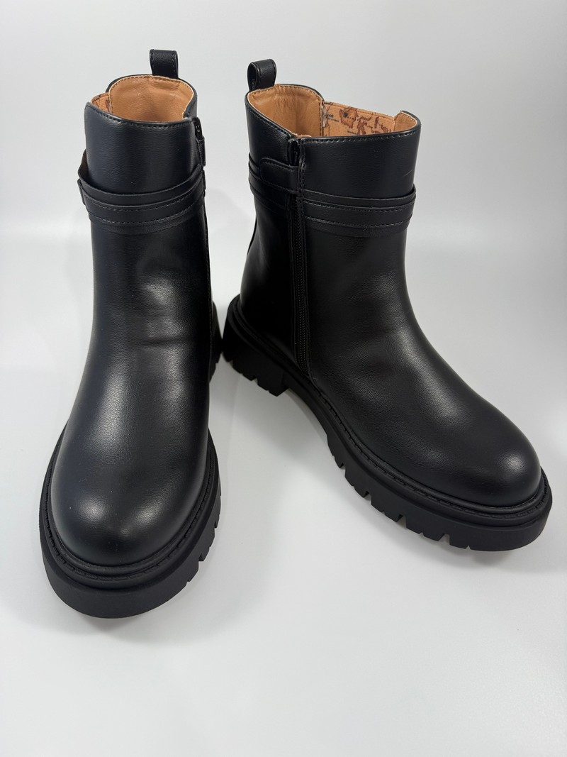 Stivaletto Alviero Martini donna nero con logo in metallo oro art.2308